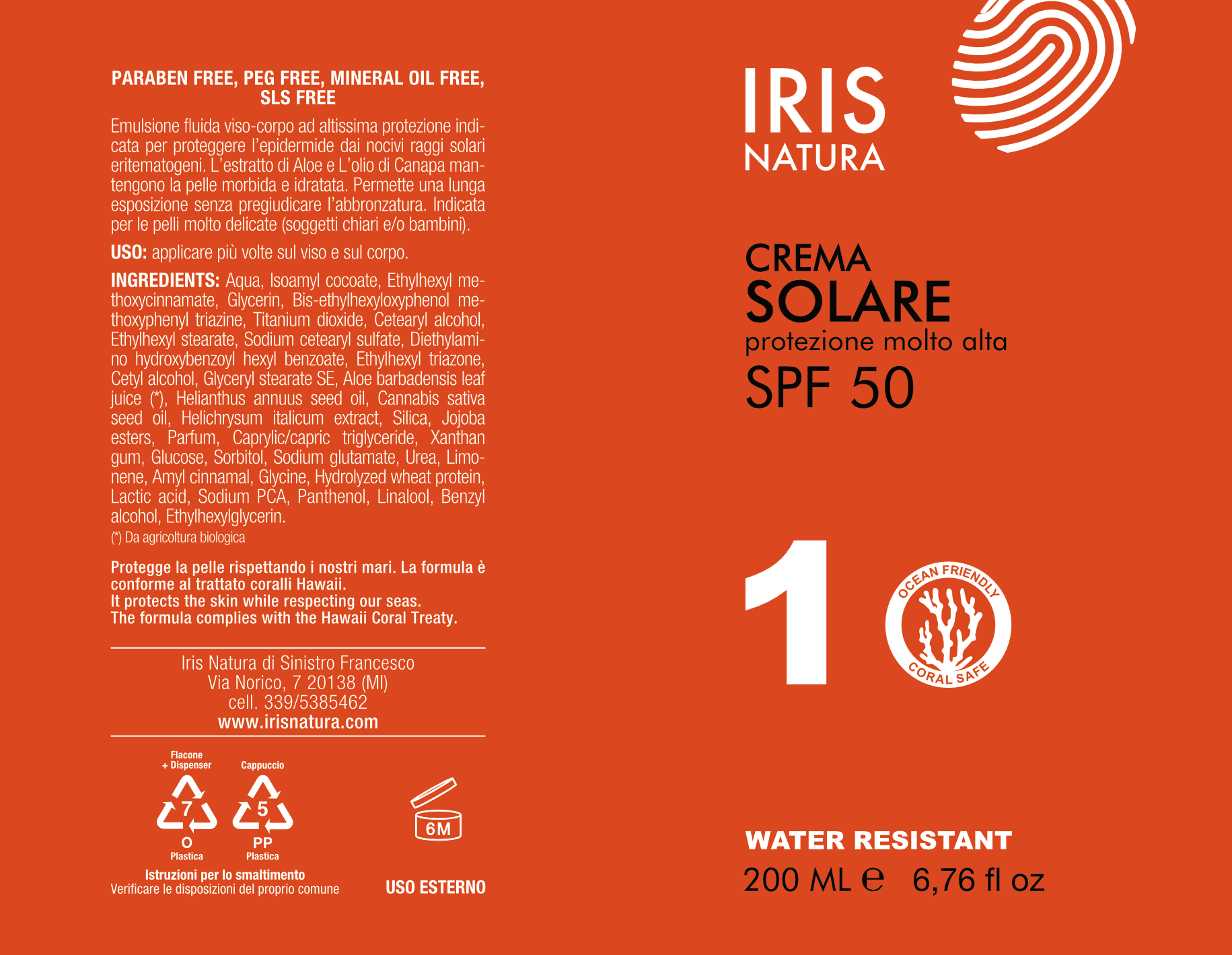 INDICAZIONI: Crema solare viso e corpo ad alto fattore protettivo. Emulsione fluida viso-corpo ad altissima protezione indicata per proteggere l’epidermide dai nocivi raggi solari eritematogeni senza pregiudicare l’abbronzatura da applicare prima dell’esposizione al sole e dopo i bagni. L’estratto di Aloe vera mantiene la pelle morbida ed idratata, mentre i filtri solari di elevatissima qualità la rendono indicata per pelli molto chiare e delicate. Non contiene parabeni, peg, mineral oils e sls.