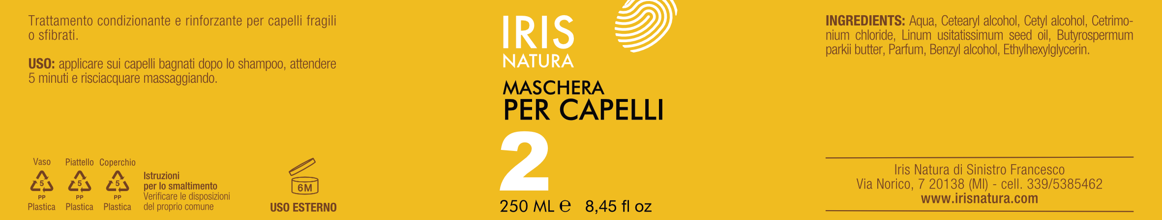 La Maschera Capelli 3 in 1 Iris Natura è un trattamento completo formulato per nutrire, ammorbidire e rinforzare i capelli fragili, secchi o sfibrati.